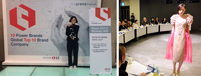 현재 저는 ‘LG패션’으로 익숙하실 LF패션의 HAZZYS LADIES 디자인실에서 일하고 있습니다. 대부분의 디자인실 막내의 주 업무는 피팅인 경우가 많습니다. 솔직히 취업을 준비하던 시기에 저의 작은 키로 인해 좌절했던 순간도 여러 번 있었습니다. 신입디자이너 공채도 거의 없었기에 경력이라도 쌓기 위해 교수님의 소개로 지금 다니는 헤지스 레이디스에서 아르바이트를 시작하게 되었습니다. 피팅도 되지 않는 제가 현재 디자인실에서 일을 할 수 있었던 것은 ‘디자인실에 없어서는 안될 사람이 되자’는 저의 다짐과 에스모드에서 배운 지식과 경험들이 있었기에 가능한 것이라고 생각합니다.