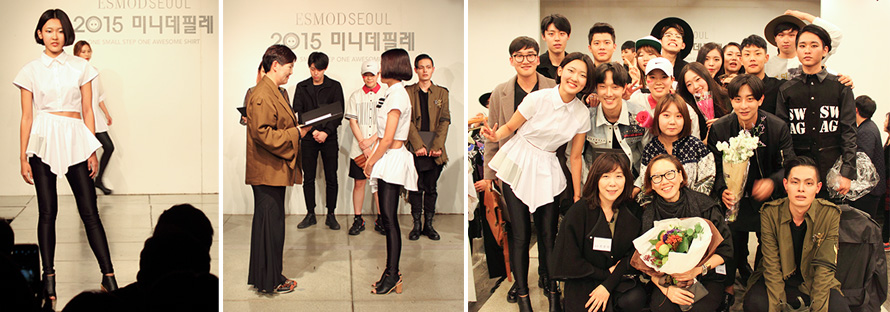 하지만 에스모드는 대학과 달리 학기 중 공강도 없고 방학도 짧습니다. 6주간의 짧은 여름 방학을 보낸 후 2학기에는 1학년들의 큰 행사인 미니데필레가 있습니다. 저는 미니데필레의 테마 중 화이트를 주제로 깔끔하고 완성도 있는 셔츠를 만들고 싶었습니다. 빅터앤롤프의 컬렉션에서 영감을 받아 원피스처럼 보이지만 입었을 때는 셔츠인 디자인으로 셔링을 디자인 포인트로 작업을 했습니다. 완성도 있는 옷을 만드는 것이 목표였기에 봉제를 열심히 했습니다. 그 결과 이번 미니데필레에서 생각지도 못한 대상을 받게 되었습니다. 미니데필레를 준비하는 동안 친구들의 작품을 보면서 자신감이 없어지기도 했지만, 이렇게 상을 받음으로써 나의 노력이 인정받는 기분에 매우 기뻤습니다. 힘들게 학교를 다니는 모습에 걱정하시는 부모님께도 큰 기쁨을 드릴 수 있어 행복한 시간이었습니다.