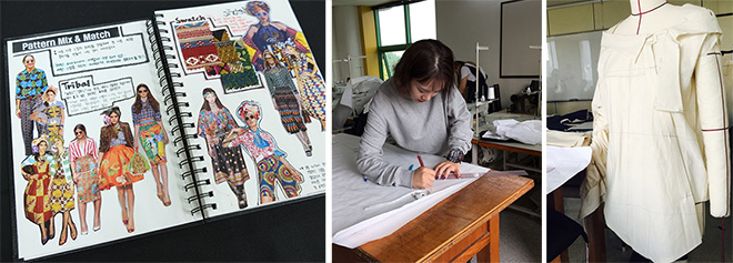 실기위주로 짜여진 수업 스케줄도 새로웠고, 지방에서 대학을 다니던 제겐 동대문 종합시장을 돌아다니면서 원단 스와치를 구하는 것이나 그에 맞는 부자재를 고르는 것 만으로도 ‘아, 내가 패션을 배우고 있구나!라고 느낄 수 있었습니다. 지방에서 학교를 다닐 때에는 서울에 있는 시장이 멀게만 느껴졌는데 매일 원단시장 이 곳 저 곳을 돌아다니면서 보고 만지고 느끼는 것만으로도 옷의 디테일한 부분에 대한 안목이 높아지고 프로페셔널한 자세로 패션공부를 할 수 있게 되었습니다.