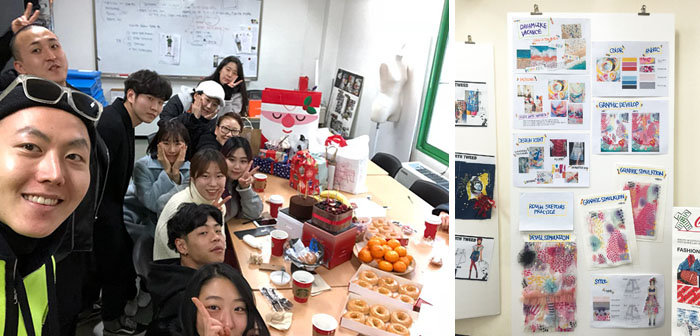 작년에 제가 소속됐던 인텐시브 반은 입학 당시 그림 한번 제대로 그려본 적이 없거나 패션과는 전혀 상관없는 회사를 다니는 등 다양한 이력을 가진 사람들이 많았었습니다. 하지만 서로가 처음이고 잘 모르는 상태로 의욕들이 가득해서인지 서로 끌어주고, 밀어주고, 단합하며 집중코스라는 말 그대로 매 세컹스마다 많은 발전을 보여주었습니다.