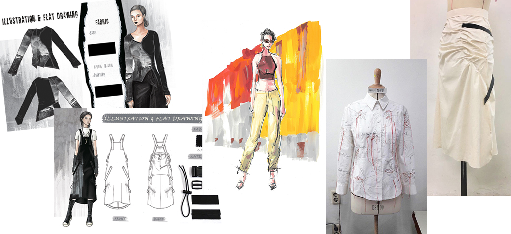 저는 입학 전 걱정과는 달리 수업과 과제를 하는 일이 그리 힘들고 버겁진 않았습니다. 오히려 입시 미술을 할 때 해보지 못했던 패션 일러스트, 패턴작업과 가봉, 스와치 구하러 다니는 경험들이 신기하고 재밌었습니다. 또 같은 교실을 쓰는 선배들의 작업물을 보는 것만으로도 자극이 되고 공부가 되었습니다.
