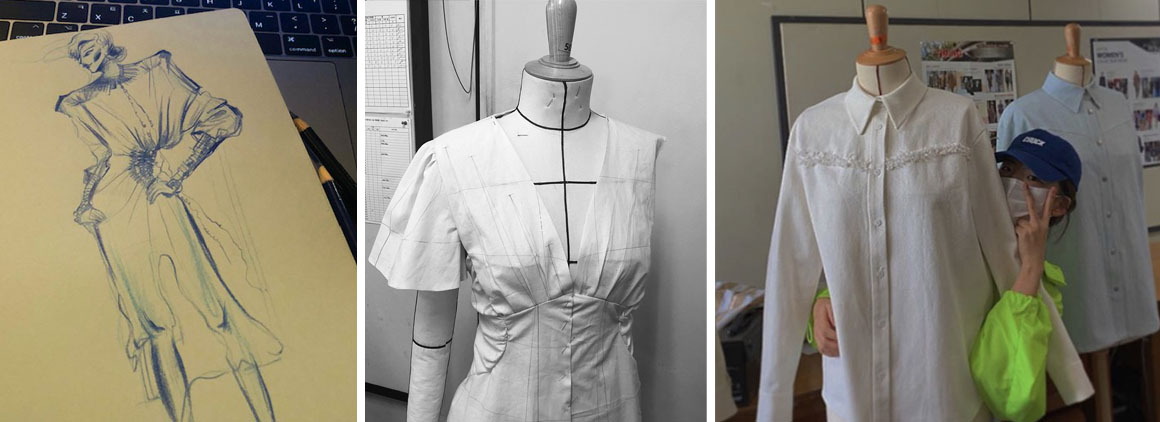 그 잠 많던 게으름뱅이가 작업물을 책임 지기 위해 일찍 일어나 등교하고, 더 좋은 원단을 찾기 위해 동대문을 수시로 들락거리고, 놀자고 불러내는 친구들과의 약속도 다 제쳐두고 지금 해야 할 일에 우선 순위를 두고 있는 제 모습 때문입니다. 그러다 보니 스스로도 쪽잠을 자고 피곤한 채로 아침에 등교할 때면 차가운 공기 속에서 느껴지는 묘한 행복감을 경험하기도 합니다.