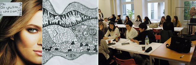 | Munich, 옥토버 페스트와 세계적인 명문 축구구단 바이에른 뮌헨, 그리고 내가 정말 가고싶었던 도시. 2011년 10월 25일, 나는 뮌헨에 도착했다. 뮌헨이 독일 내 다른 도시들 보다 물가가 비싸다는 교수님들의 말씀에 나름 꼼꼼하게 서울에서부터 재료들을 준비하다보니 허리가 휘청거릴 정도의 짐을 들고, 작년에 우리 학교 차다운 선배가 묵었다던 한국 민박집에 짐을 풀었다. 평소 내가 패션 못지않게 열정적인 일이 여행인데, 여행은 그동안 내게 삶의 에너지를 채워주고, 때로는 많은 질문을 던지며, 나로 하여금 다시금 내가 걸어온 길을 되돌아보게 만들어 삶을 긍정적으로, 적극적으로 살 수 있도록 해주었다. 그래서 수업 시작 전 1주일 가량의 시간을 뮌헨시내부터 해서 뮌헨 근교, 오스트리아까지 부단히 열심히 걷고 보고 느끼고 생각하며 그동안의 지친 심신을 달랬다. 첫날은, 뮌헨 에스모드 교장 선생님과 사무처장님 그리고 여러 선생님들께 인사를 드리고, 간단한 교환 학생 프로그램에 관한 오리엔테이션이 진행되었다. 애초의 예상과는 달리 사전에 확실하게 짜여진 프로그램이 아닌 나의 의사나 성향을 고려한 뒤 프로그램을 구성하는 식이어서 보다 내게 편안한 수업 분위기를 만들어 주시려고 했다.첫 수업은 1학년 학생들과 함께 세계적인 독일 감독 빔 벤더스가 연출한 요지 야마모토에 관한 다큐멘터리 영화를 감상했고, 이후에는 소감 발표가 있었다. 오후 스틸리즘 수업에는, 얼굴 사진의 반을 잘라내고 나머지 반을 패턴으로 자유롭게 채우는 시간이었는데, 정말 자유로운 수업 분위기는 신선한 자극이었다. 서울에서는 스틸리즘 시간에 보이지 않는 컨폼 전쟁(?)이 일어나곤 하는데 이곳에서는 그러한 조급함이나 경쟁을 찾아볼 수 없을만큼 조용하고 평화로운 분위기가 적잖은 충격으로 다가왔다. 그리고 이미 서울에서 배운바 있던 스타일화를 다시금 복습했는데 그림에 자신이 없는 나로서는 좀 더 다양한 포즈를 배울 수 있어 유익했던 시간이었다. 또 스틸리즘 시간을 통해 수업 틈틈이 여러 학생들과 대화를 나누면서 자연스럽게 그들과 친구가 될 수 있었다. ![]() 1학년은 sm1, sm2 이렇게 두 반으로 각반에 30명 정도의 학생들이 있었는데 내가 속했던 sm1은 월, 화 스틸리즘 수업, 수요일은 이론 수업, 목, 금은 모델리즘 수업으로 서울과 수업시간이 달랐다. 수요일 이론 수업은 오전 복식사와, 여기서는 불어 대신 영어 수업이 있었고, 오후에는 소재 수업이 따로 마련되어 있었다. 오전 복식사 수업을 들으며 대학 때 꽤나 자부했던 나의 독어 실력이 많이 녹슬었고, 형편없다는 사실을 절감하게 되었다. 거의 알아들을 수 없었던 것이다. 그러나 옆에서 친구들이 틈틈이 영어로 말해주고 낯익은 단어들로 유추해가면서 수업을 들었는데 이것은 소재 수업에도 마찬가지여서 그다지 내게 도움이 되는 시간은 아니었다. 그 날 수업 후에 Ingo교수님과 이점에 대해 상의했고, 이후에는 이론 수업보다는 실질적으로 내게 도움이 되는 수업으로 대체되었다. ![]() 목요일과 금요일은 모델리즘 수업이 있었는데, 목요일 하루 동안 종이로 시대 의상을 재현하는 프로젝트가 팀별로 진행되었다. 나는 이자벨라와 함께 엠파이어드레스를 만들었는데 불과 2개월도 채 안 된 1학년 학생들이 사진과 유사한 드레스를 만들어 내는 능력과 자유롭지만 진지하게 집중해서 수업에 임하는 태도가 상당히 놀라웠다. 다음날은 스커트 지정 모델로 10F/W 루이비통 스커트를 만드는 중에 내가 수업에 참여하게 되어, 스커트 디테일을 광목으로 만들어보면서 자연스럽게 다양한 종류의 재봉틀을 익히는 시간을 가졌다. 뮌헨 에스모드의 경우는 따로 봉제 수업이나 봉제 교수님이 없고, 모델리즘 선생님이 모든 것을 다 맡아서 하는데, 오히려 이점은 서울 에스모드가 좀 더 기본에 충실한 교육, 더 나은 교육 환경이라는 생각이 들었다. 1학년 2주차는 스틸리즘 시간에 figurine과 coloring을, 모델리즘 시간에는 디테일 제작을 계속 이어갔고, 수요일 이론 수업대신 1학년 Danny와 함께 뮌헨 시내의 market research를 다니면서 뮌헨의 패션 경향과 스타일등을 대략적으로나마 알 수 있게 되었고, 밤에는 뮌헨의 가장 Hot하다는 클럽에서 1학년 친구들과 어울려 밤새 춤추며 놀았는데 나이탓인지 다음날 후유증이 적잖았다. 역시 스무 살 친구들과의 클럽 출입은 내겐 무리였던 것 같다. 다음으로 2학년 2주간의 수업을 듣게 되었다. 2학년 수업은 1학년과 달리 격주로 진행되어 한 주동안 스틸리즘을, 그 다음주는 모델리즘이 진행되는 식이었다. |