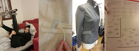 파리의 분위기처럼 낯설지만 흥미롭게 다가온 학교, 에스모드 파리. 나는 인터내셔널 클래스에 배정되어 여러 나라에서 온 다른 친구들과 함께 수업을 듣게 되었다. 수업 전부터 파리에서 입체 패턴을 배우는 것에 대해 가장 기대가 컸었던 터라 모델리즘 수업이 특히 재미있었다. 하나의 수트 재킷을 먼저 평면 패턴으로 떠서 이해하고 그 다음 두 개의 다른 스타일의 수트 재킷을 입체 재단으로 배웠다. 확실히 입체패턴을 배울 때 재킷 칼라 부분이나 어깨가 어려웠지만 일러스트만을 보고 형태를 잡아나가는 과정이 너무나 신기하고 흥미로웠다. 드레이핑을 하기 전에는 에스모드 서울에서 지정모델을 하는 것처럼 먼저 평면 패턴을 떠서 가봉을 보고 실물제작을 했는데 처음으로 접해보는 테일러드 재킷이라 주머니 처리, 재킷의 트임, 안감 부분이 어렵긴 했지만 처음이라 더 흥미롭기도 했다.