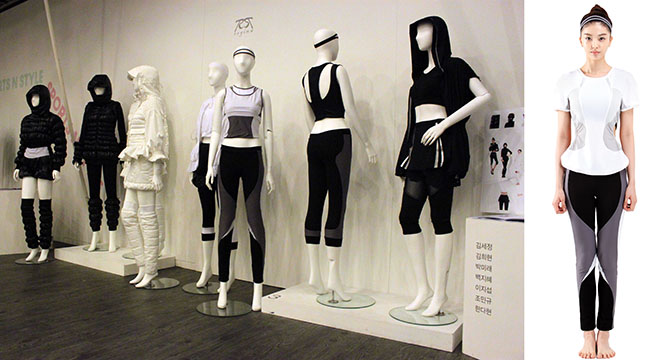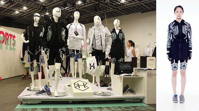근력운동, 유산소운동, 요가 등 헬스장에서 할 수 있는 실내스포츠를 위한 브랜드. 'Heal Gage'는 옷을 입고 운동을 하면서 힐링의 게이지가 높아진다는 의미. 요가복에 안티 스트레스 소재를 사용했고, 더위를 덜 느끼도록 메시 소재를 사용했다. 양 소매가 팬츠로, 원피스가 점프수트로 변형된다. 인체구조를 전자회로처럼 프린트 개발해 미래적인 느낌을 더했으며 블랙, 화이트에 올해 트렌디 컬러인 에메랄드 그린을 포인트로 사용했다. 옷에 부착된 택은 이어폰 줄감개로, 옷을 담는 패키지는 수건으로 재활용할 수 있는 것도 특징.