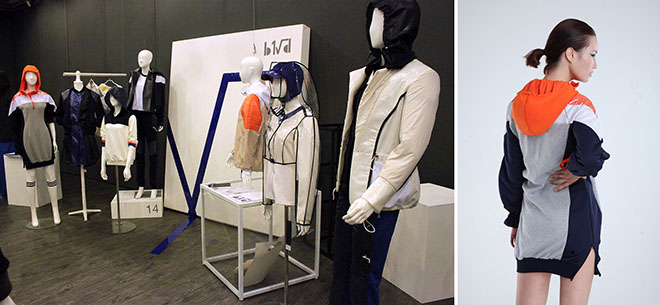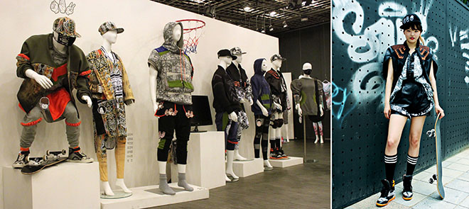 거리에서 운동을 즐기는 젊은 층을 타깃으로 한 스트리트 스포츠 캐주얼 웨어. 축구공의 5각형과 6각형 패턴을 응용, 자석으로 반조립, 완조립 형태를 만들어 사용자가 원하는 부위에 보호대로 스타일리시하게 연출할 수 있다. 그래피티와 거리 풍경을 콜라주하여 프린트를 개발해 배기팬츠, 블루종 등 넉넉한 실루엣의 아이템에 적용했다.