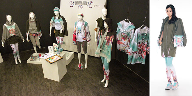 도심에서 자연을 즐기며 힐링하는 20~30대 여성을 타깃으로 한 아웃도어 브랜드. 가상의 여성을 직접 스케치한 후 이를 자연의 이미지와 믹스해 프린트를 개발한 것이 특징이다. 은은한 컬러의 프린트와 여성 모티프가 돋보여 동화적이면서 페미닌한 컬렉션을 연출했다. 어깨, 소매, 허리 등의 주름 디테일을 주었으며 드레이핑을 디테일로 사용해 여성스러움을 강조했다. 역동적인 움직임을 고려해 패턴 작업을 했으며 후드, 포켓은 떼어 다른 옷에 부착할 수 있다. 힙색, 벨트, 암워머, 스니커즈 같은 액세서리와 애완견과 함께 운동하는 여성들을 위한 애완견 옷도 디자인했다.