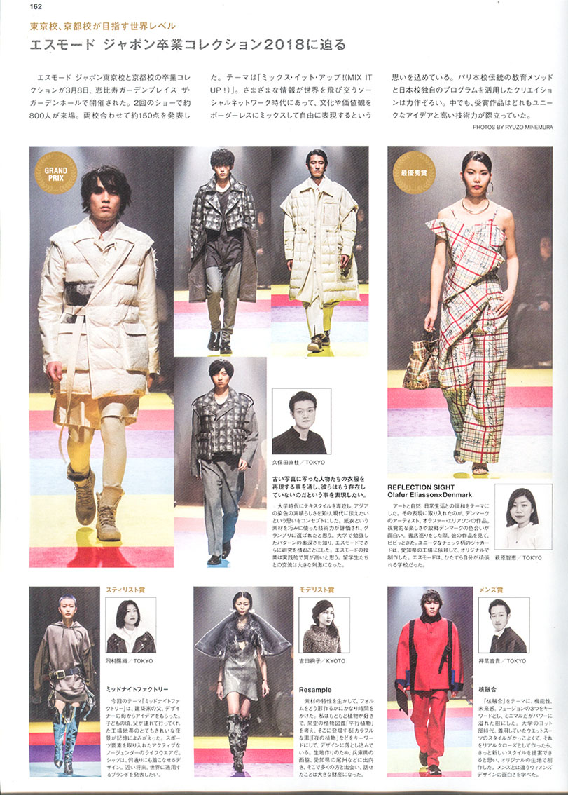 패션쇼, 패션트렌드를 전문으로 다루는 일본 매거진「WWD」의 컬렉션 북인 「FASHION NEWS」에 에스모드 도쿄 졸업작품이 소개됐습니다. 이와 함께 에스모드 인터내셔널 그룹 니노 사토루(Nino SATORU) 회장의 메세지와 에스모드 그룹에 대한 소개도 함께 진행됐습니다.