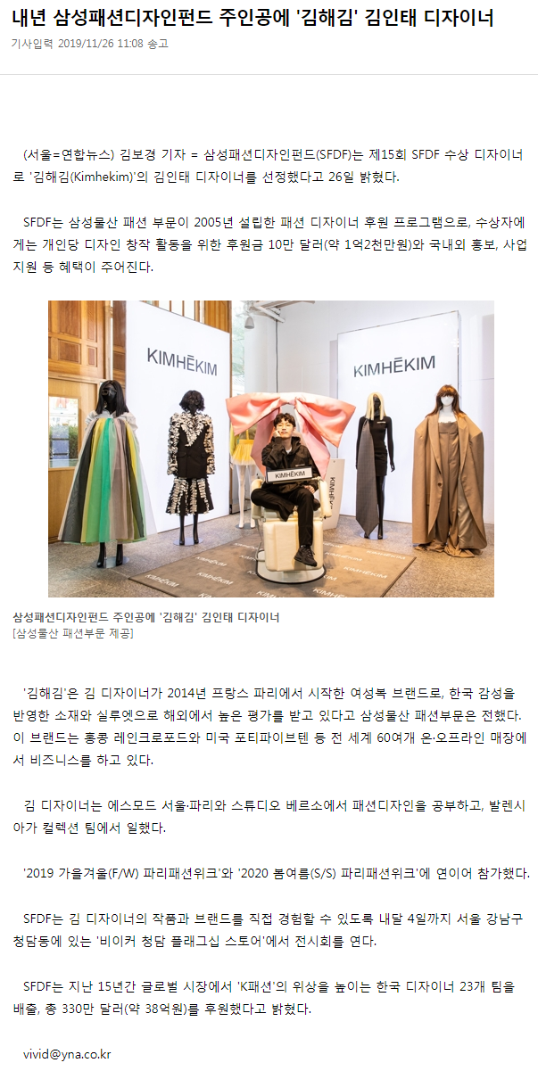 [연합뉴스] 내년 삼성패션디자인펀드 주인공에 '김해김' 김인태 디자이너