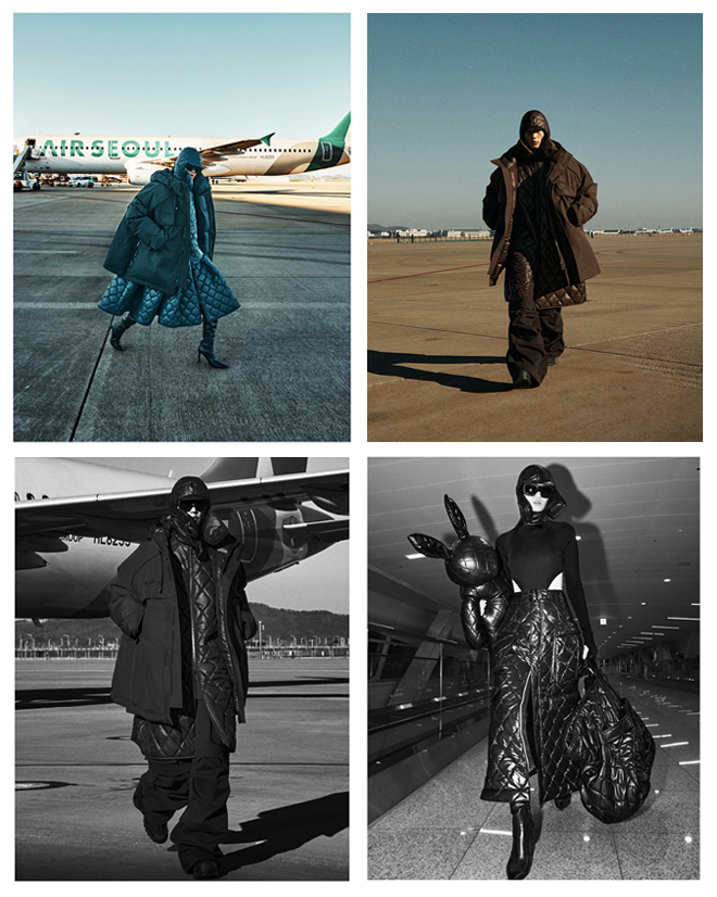 특히 퀼팅을 사용해 볼륨과 풍성한 실루엣을 표현했고, 아우터는 물론 맥시 드레스, 스커트, MA-1, 재킷, 후디 등 다양한 아이템에 새롭게 적용했다.