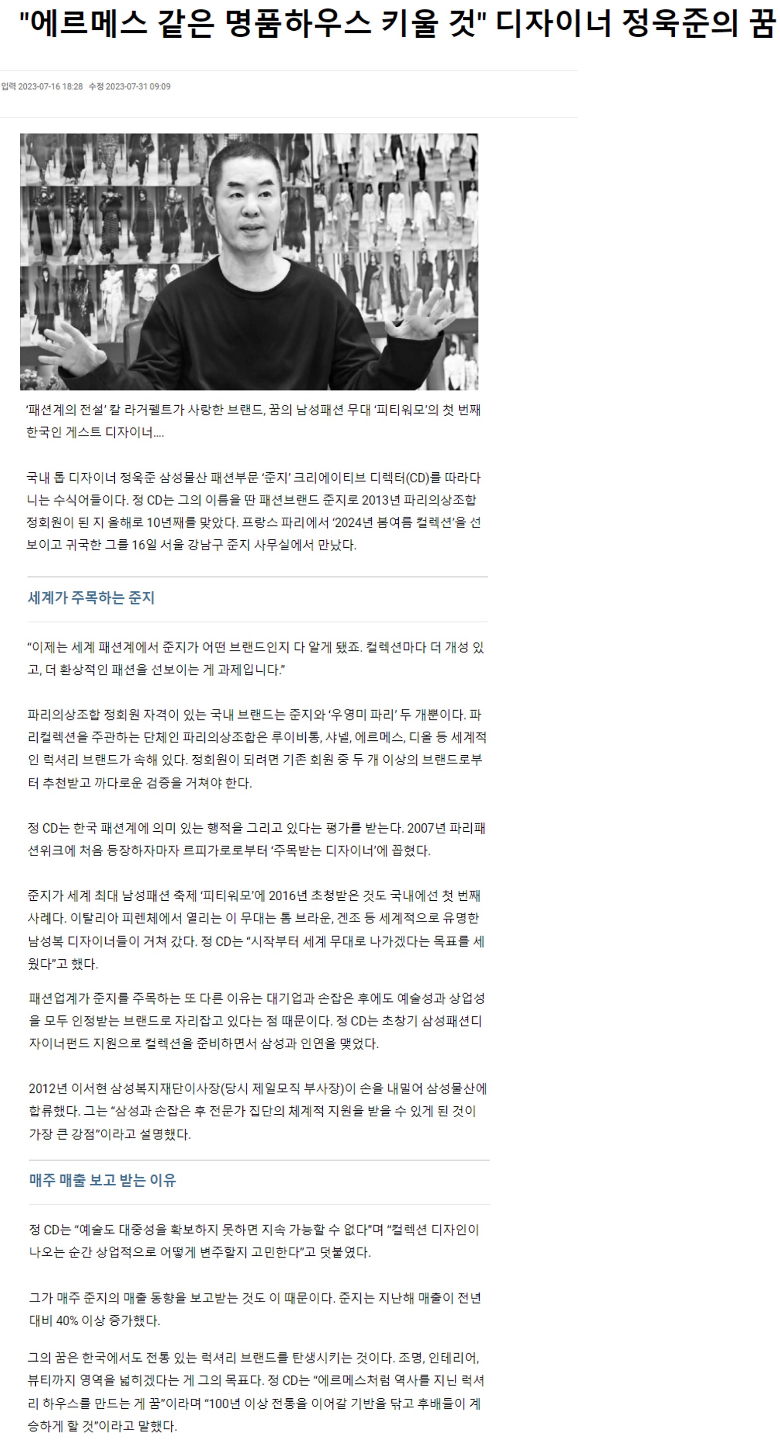 [한국경제] "에르메스 같은 명품하우스 키울 것" 디자이너 정욱준의 꿈