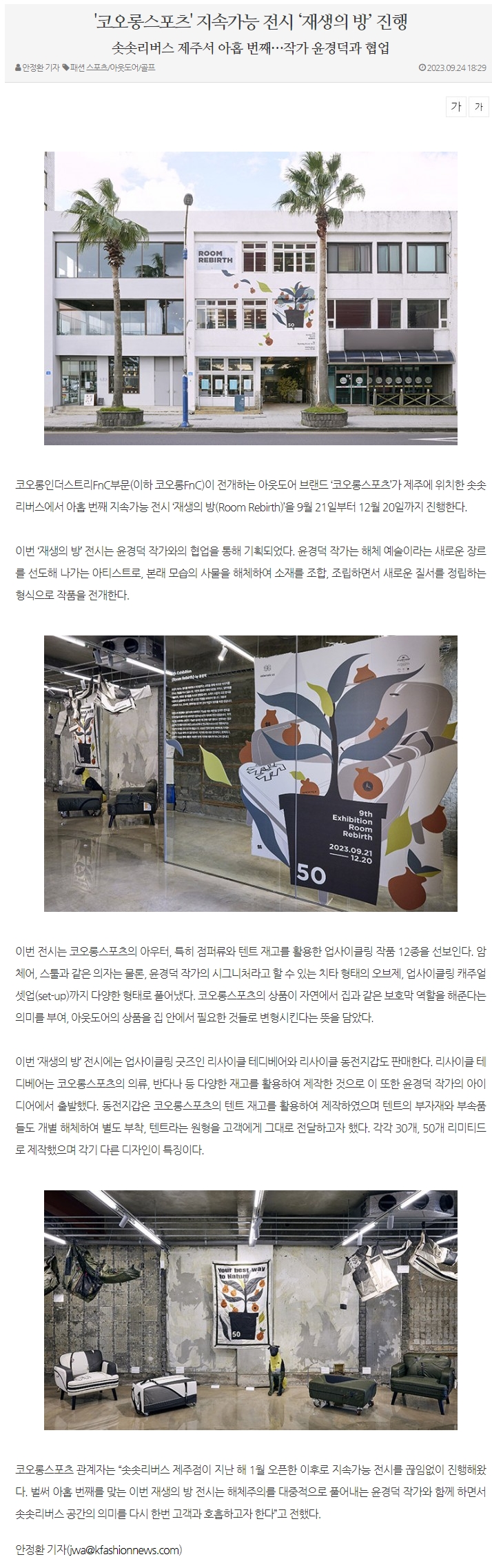 [K패션뉴스] 작가 윤경덕, 코오롱스포츠' 지속가능 전시 협업