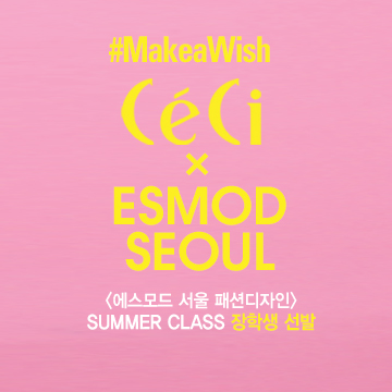 패션매거진 쎄씨(Ceci)와 함께하는 본 프로젝트는 '패션 디자이너'라는 꿈에 한 발짝 다가갈 수 있는 기회로, 행운의 주인공은 3주간 진행되는 썸머클래스의 스틸리즘(패션디자인)과 모델리즘(패턴디자인) 동시과정을 무료로 수강(147만원 상당)하게 됩니다.